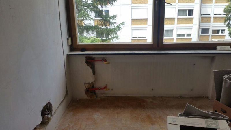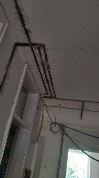 Hier wurde die Wohnung komplett saniert. Durch neue Installationen(Elektro/Sanitär) wurde einiges an Ausgleicharbeit nötig, Heizkörpernischen ausmauern und neu verputzen, Kabelschlitze einputzen usw.. Alle Wände überspachtelt, durch Eigenleistung der Bauherrschaft ein geeigneter Voranstrich angebracht. Danach werden wir dann die Decken und Wände neu gestalten